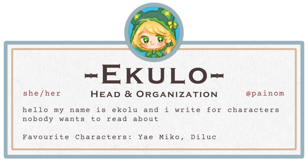 The Steambird’s Best Sellers List is an upcoming fanzine dedicated to lovers of character x reader works within the Genshin Impact fandom.